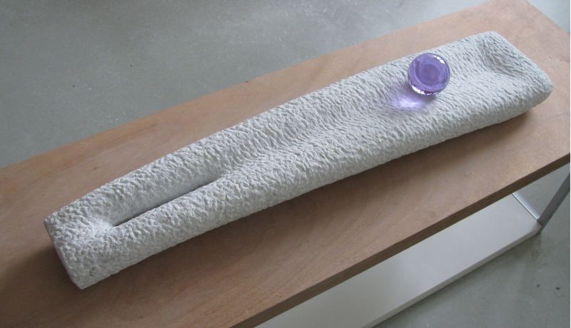 It has become a slightly curved shape, with round forms and open space inside. The glass ball enhances the movement of the interior and captures the daylight beautifully.