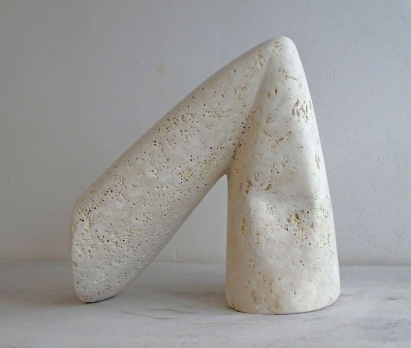 As soon as I see a nice piece of travertine, I want to get started. The stone is lively by itself, which is why I chose a simple shape with few details. One gesture: bow of nod. On one side this is tightly executed, on the other side the stone has an extra bend.