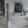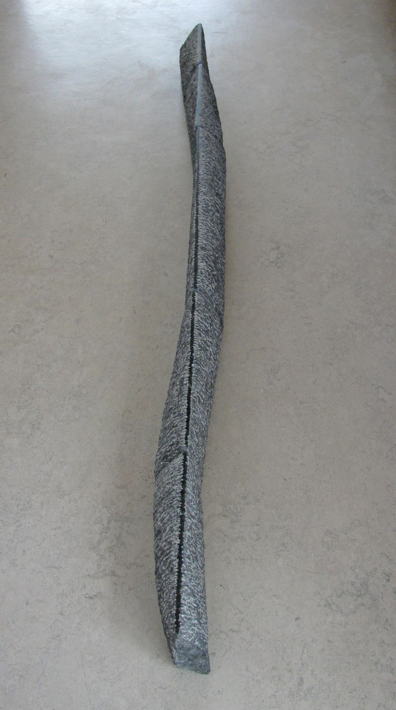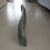 One of my upcycling projects. What can you do with a series of bluestone window sills. I found them somewhere at the demolition. With these fairly flat stones I searched for a sculpture that still contains volume and movement. Roughly carved with the pointed chisel. The individual parts are still clearly visible. The narrow top is polished in gloss black and has a straight waistline. An invisible metal strip at the bottom keeps the stones in place.