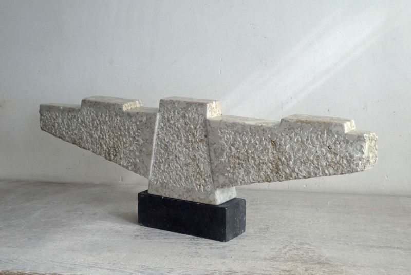 Breccia is a clastic sedimentary rock. This means that it is formed from larger fragments of pre-existing rock that are cemented together after weathering, erosion and deposition. In this sculptrue you can see both the structure of the chisel stroke and the skin after polishing. It has a beautiful, warm, light colour, with many nuances.