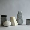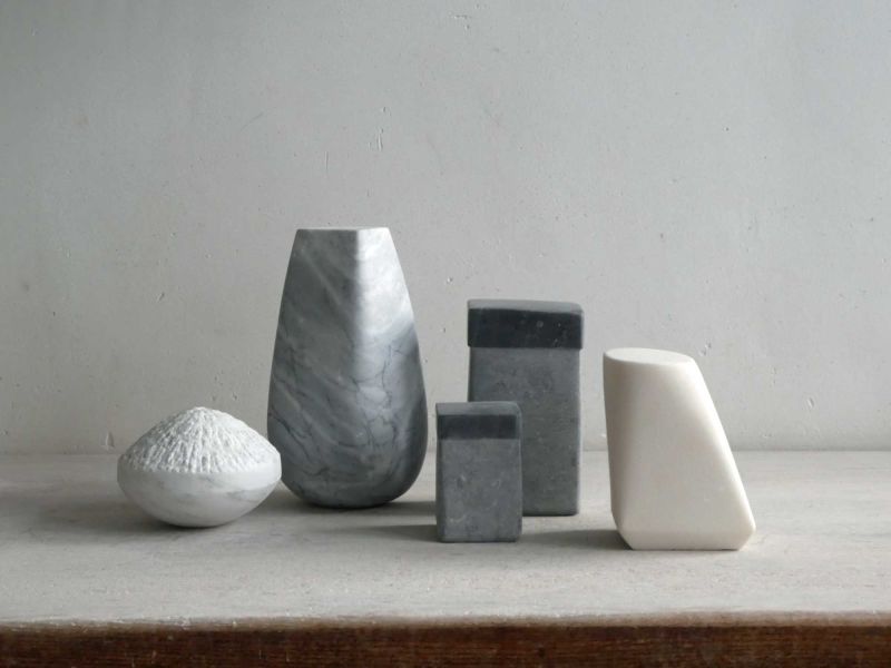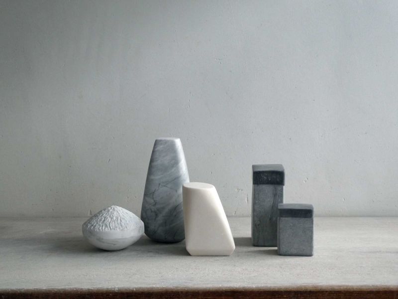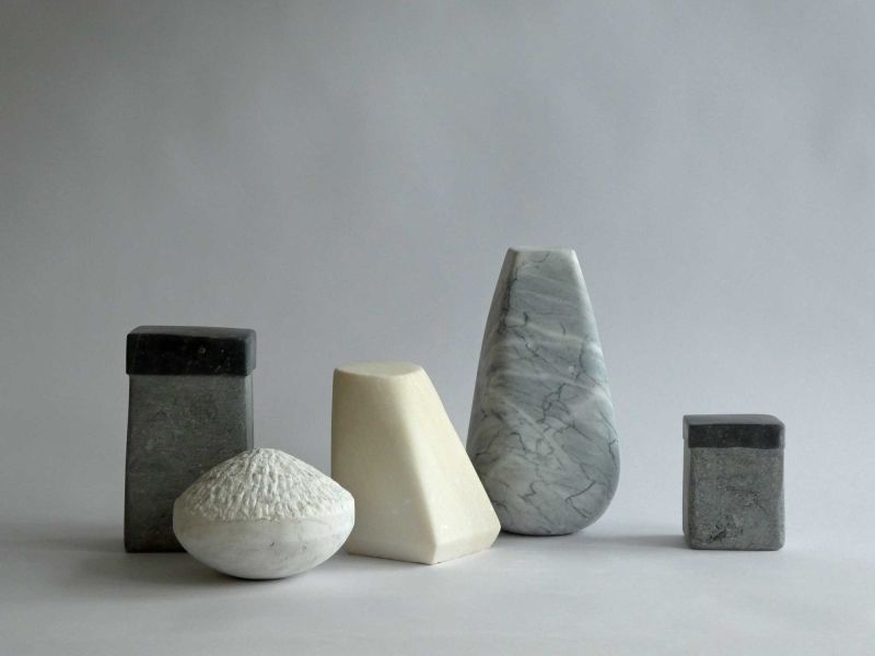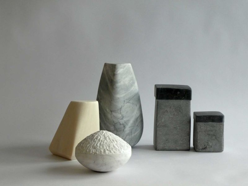 Although I don't normally work in series, the "Ode to Morandi" keeps recurring. When I have a number of small, varied, and inviting leftover stones, the puzzling and combining begins almost naturally. The common thread is always the play with proportion, color, structure, and arrangement.