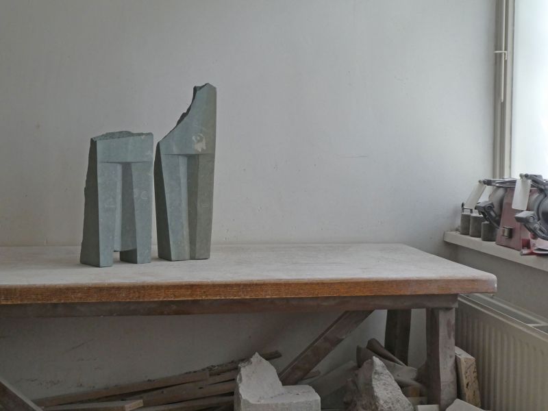 This sculpture is inspired by ancient ruins and temple gates. With rough, old pieces, and tightly worked parts. A bit whimsical, but also made by human hands. I wanted to allow coincidence in this sculpture, the shape of the stone was the starting point. For me this sculpture is about passing time: the old and the new.