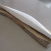 A long slender shape made of a light colored limestone. Subtly carved by hand with the pointed chisel. Narrow ends, pointed from above, round seen from the side.