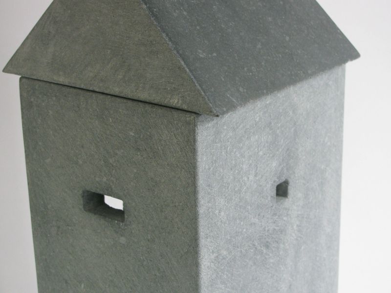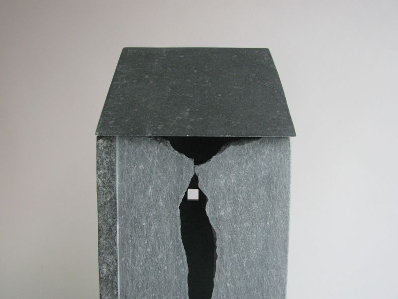 A tower, but also a bit like a cave. You can hardly look in. It's about the light falling in, and the mystery of a building. It's made of three different parts of Irish bluestone, fitting well togehter. The roof-parts are polished to black.