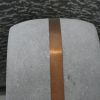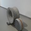The design for this sculpture arose from the theme of "power play / resilience". The large, middle stone (estimated weight between 100 and 120 kilos), hangs between the two other stones, floating above the ground. The copper lashing strap keeps the two stones together, so that they can bear the weight. Each part fulfills an essential function and is indispensable for the whole.