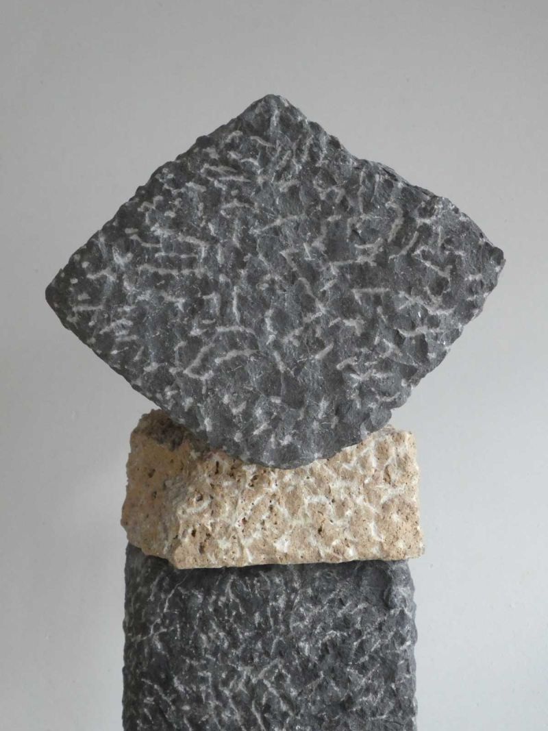 Een combinatie van verschillende stukken hardsteen die ik nog op het fort had liggen en een klein restje travertijn. Ik wilde het dit keer niet te gepolijst maken, een beetje ruig.