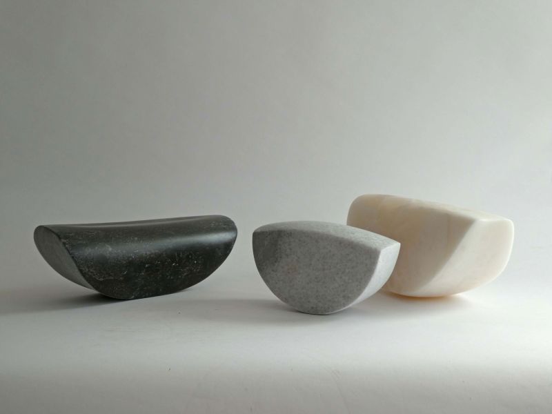 Afmeting: 14 x 31 x 12 cm (Albast), 12 x 20 x 8 cm (marmer) en 10 x 31 x 12 cm (hardsteen)