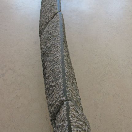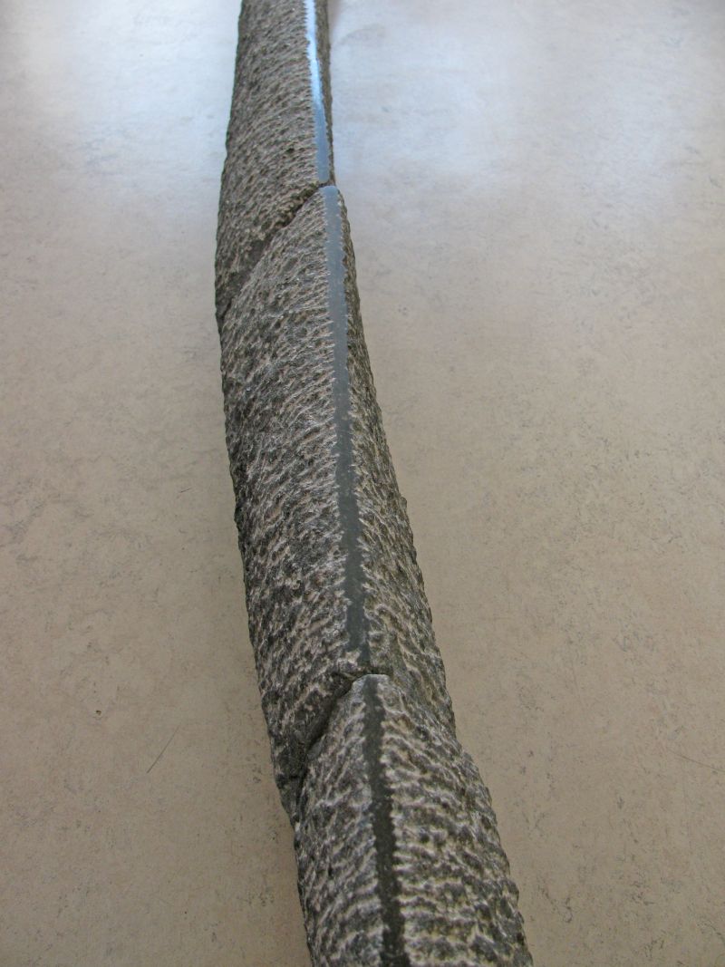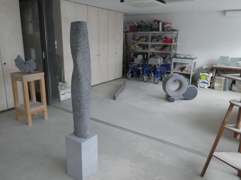 Een van mijn upcycling-projecten. Wat kun je doen met een serie oude hardstenen vensterbanken. Ik vond ze ergens bij de sloop. Met deze vrij platte stenen heb ik gezocht naar een beeld waar toch ruimte en beweging inzit. Ruw gehakt met de puntbeitel. De afzonderlijke delen zijn nog duidelijk zichtbaar. De smalle top is glanzend zwart geplijst en trekt een rechte middelijn. Een onzichtbare metalen strip aan de onderkant houdt de stenen op zijn plaats.