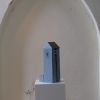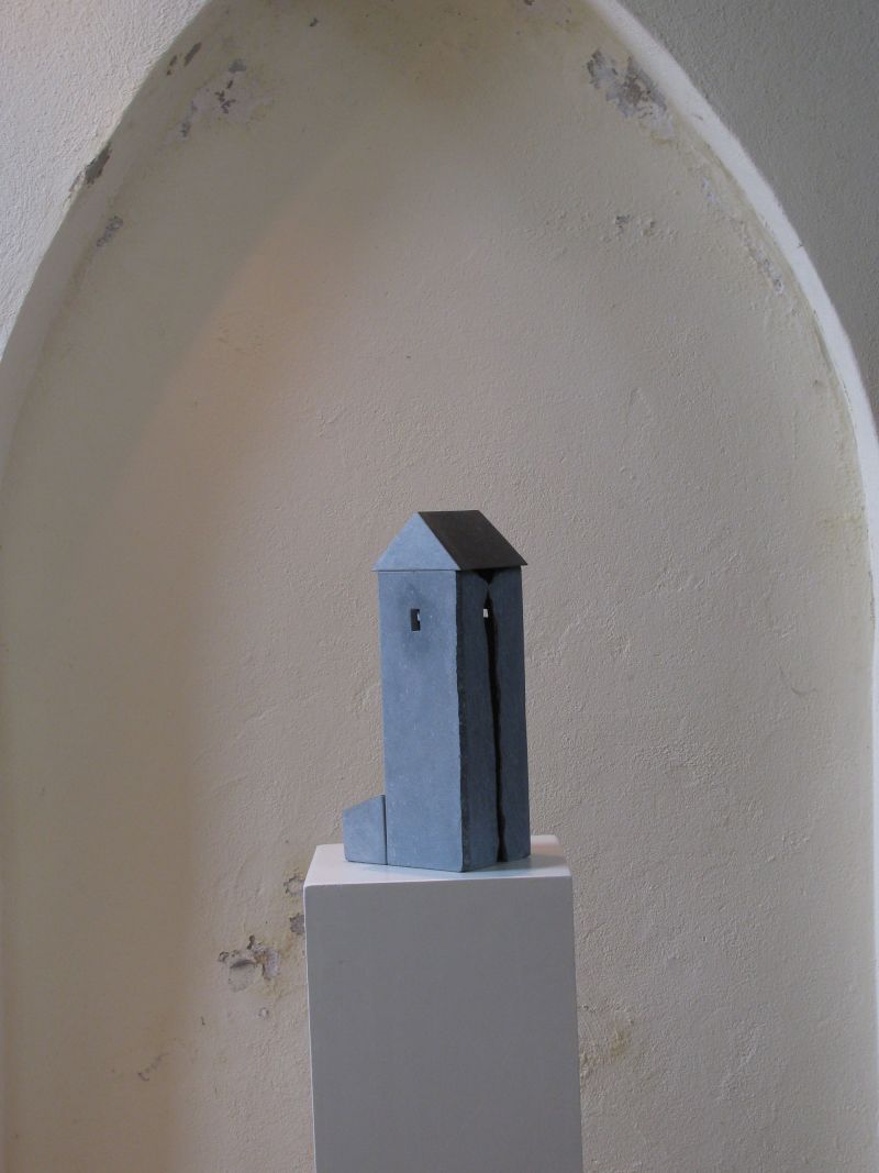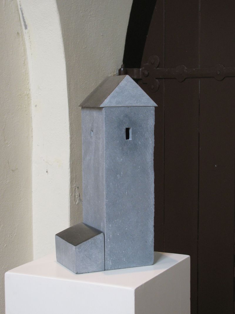 Een toren, maar ook een beetje een grot. Je kunt er nauwelijks in kijken. Het gaat over het licht dat binnenvalt, en het mysterie van een gebouw. Het bestaat uit drie verschillende delen van Ierse blauwe steen, die goed bij elkaar passen. De dakdelen zijn zwart gepolijst.