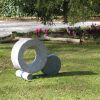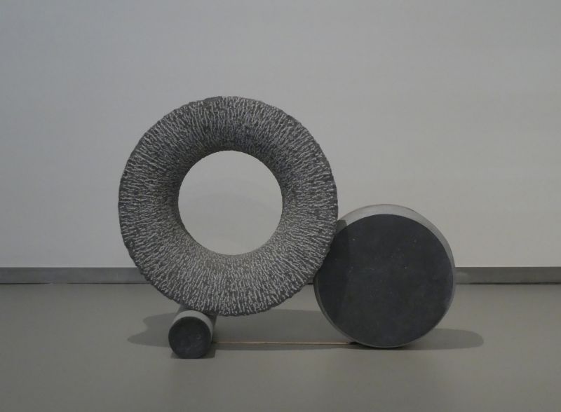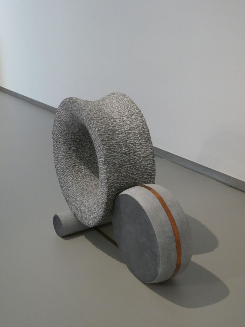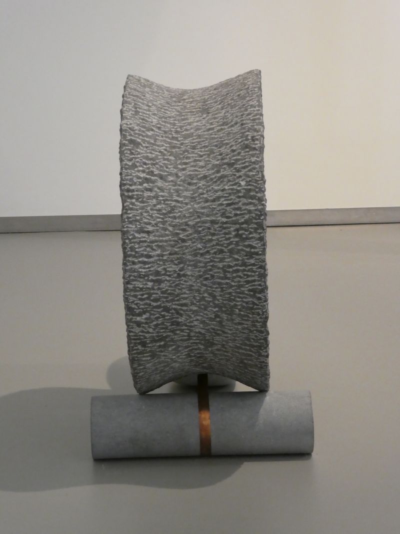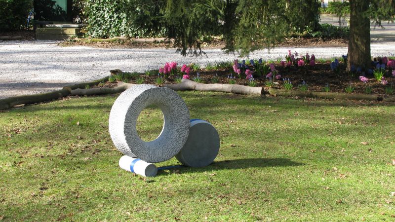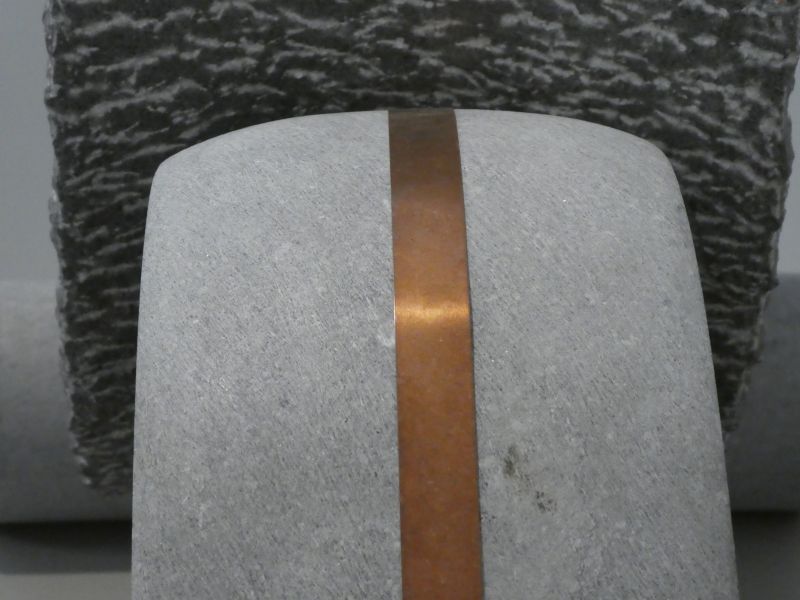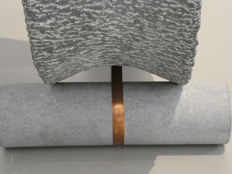 Het ontwerp voor dit beeld is ontstaan vanuit het thema ‘krachtenspel/veerkracht’. De grote, middelste steen (geschat gewicht tussen de 100 en 120 kilo), hangt tussen de twee andere stenen, zwevend boven de grond. De spanband van koper houdt de twee stenen bij elkaar, die zo het gewicht kunnen dragen. Elk onderdeel vervult een wezenlijke functie en is voor het geheel onmisbaar.