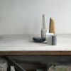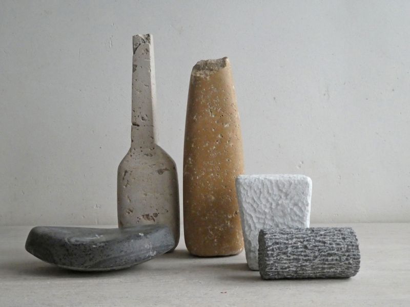 Hoewel ik normaalgesproken niet in series werk, blijft de ‘Ode aan Morandi’ terugkomen. Heb ik weer een aantal kleine, gevarieerde en uitnodigende restanten, dan begint het puzzelen en combineren haast als vanzelf. De overeenkomst zit steeds in het spelen met verhouding, kleur, structuur en ordening.
