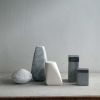 Hoewel ik normaalgesproken niet in series werk, blijft de ‘Ode aan Morandi’ terugkomen. Heb ik weer een aantal kleine, gevarieerde en uitnodigende reststenen, dan begint het puzzelen en combineren haast als vanzelf. De overeenkomst zit steeds in het spelen met verhouding, kleur, structuur en ordening.