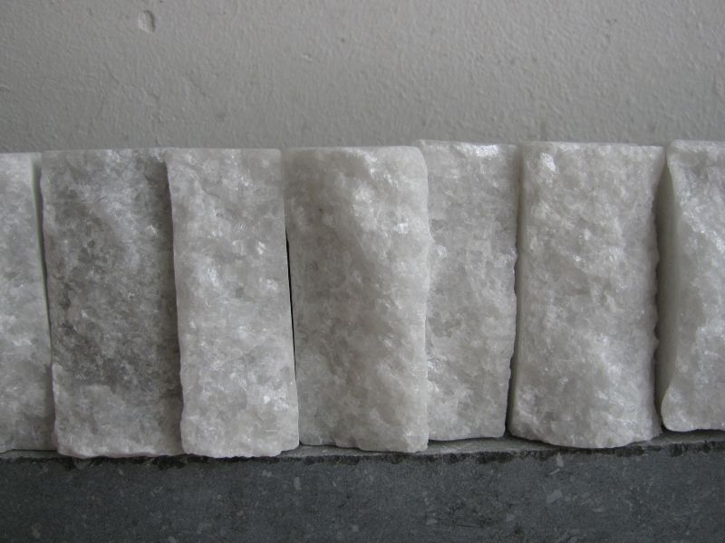 Ruw gebroken stukken steen, en zeker marmer, vind ik vaak erg mooi. Het marmer uit dit beeld heeft een grove krisallijn met mooie schittering, in witte en grijze tinten.