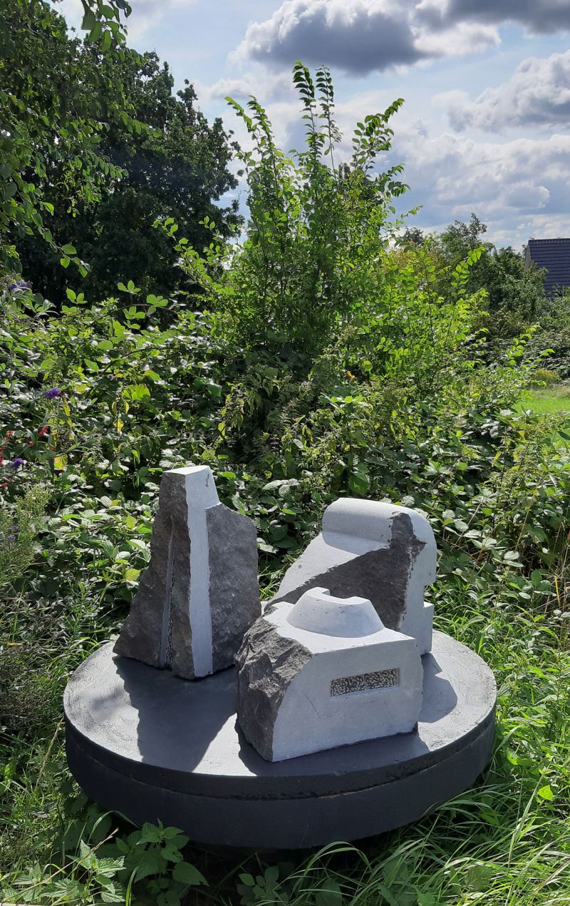 Mijn atelier op Fort Maarsseveen en het boek ‘Uit beton gegoten’ over de groepsschuilplaatsen Type P van de vesting Holland (eindredactie Hendrik Dijk en Rob Hoekstra), waren voor mij een inspiratie om tot deze beeldengroep te komen. De stoere, robuuste vormen, die ooit een functie hadden, waar we nu nog maar weinig over weten. Het zijn overblijfselen uit het verleden, die al meer dan 80 jaar stand houden.