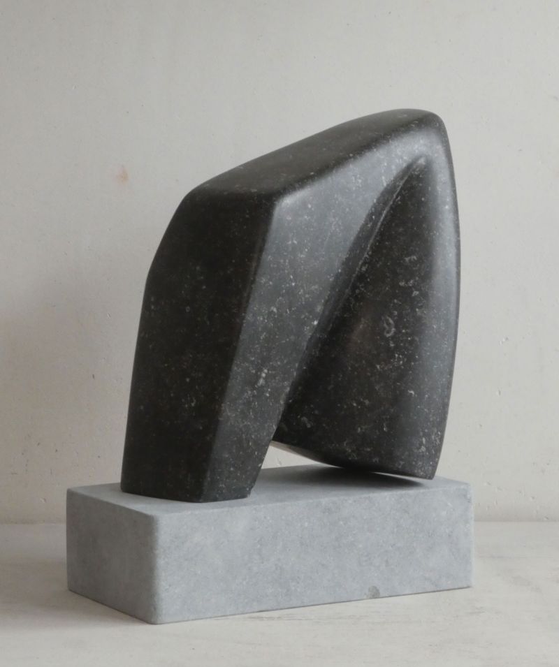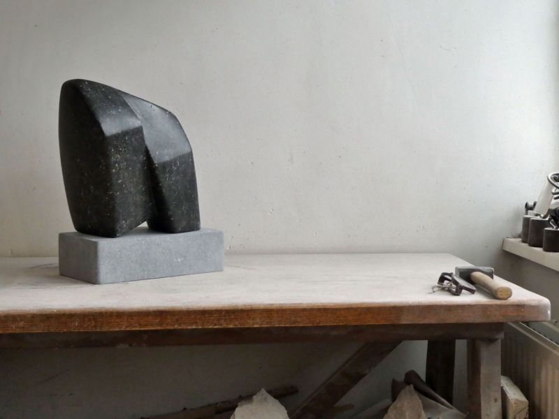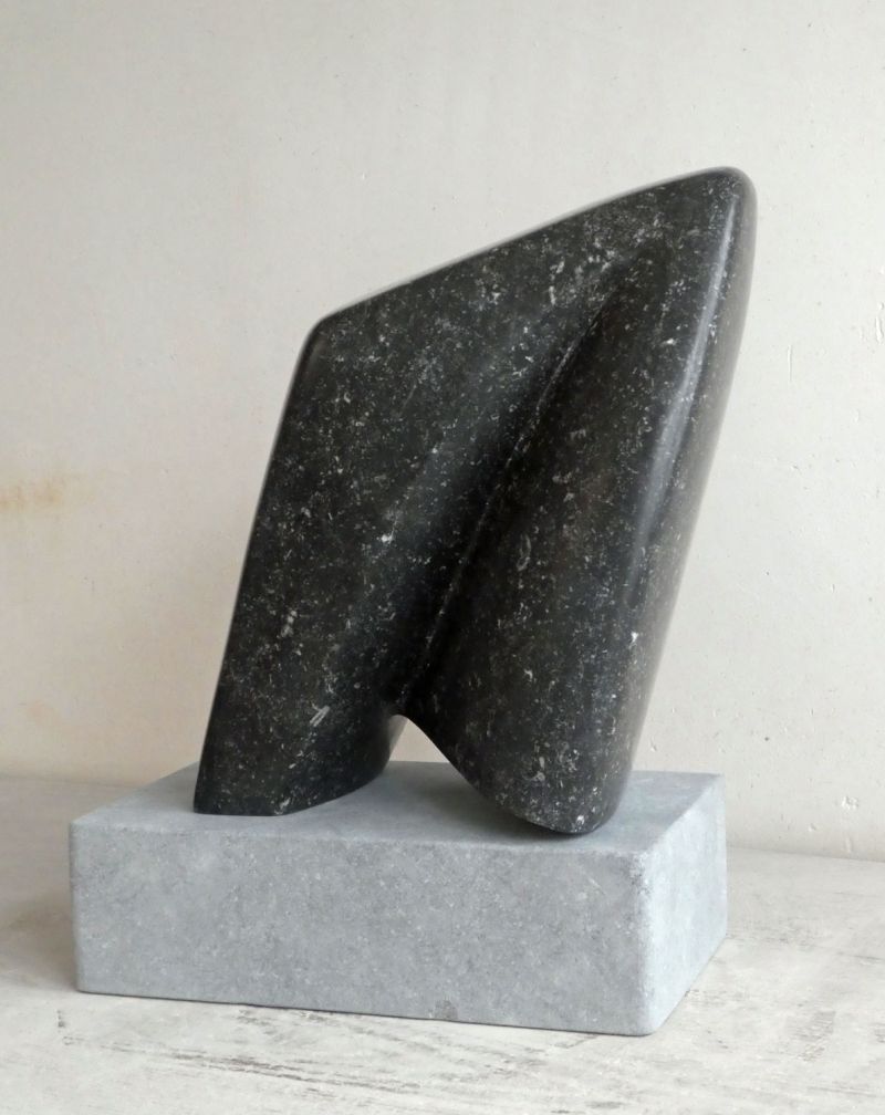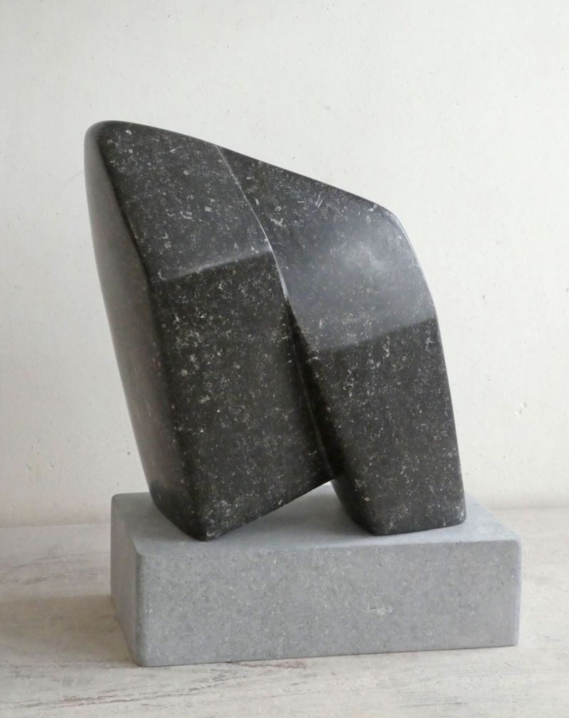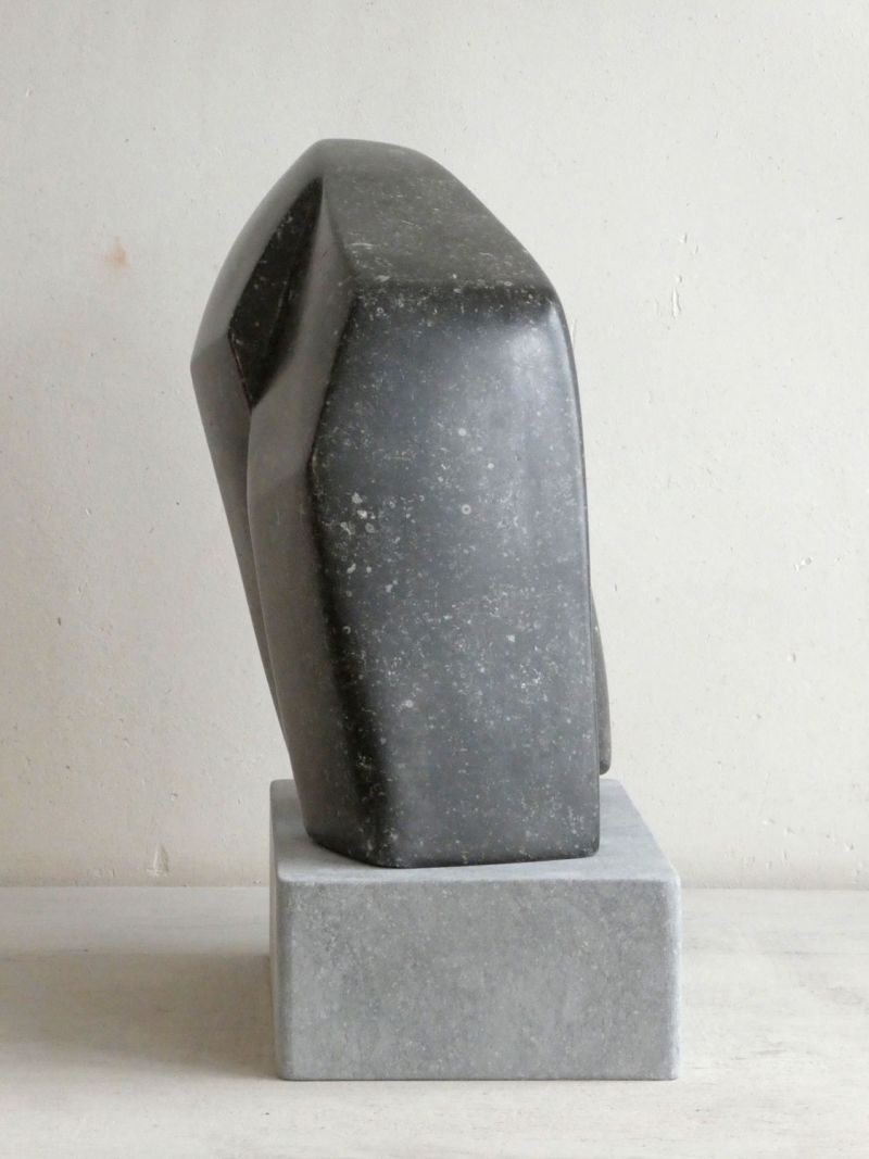 Ik heb gekozen voor een strakke en gladde afwerking, omdat je dan een mooie schaduw-licht werking krijgt. Afhankelijk van de plek, kun je ervoor kiezen het beeld te plaatsen op de hardstenen voet, dat geeft iets meer hoogte. Hardsteen kan heel goed buiten, al zal het gepolijste zwart zijn glans dan uiteindelijk verliezen.