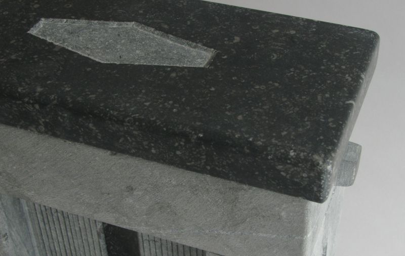It’s made of three parts of bluestone. The top part is polished to black.