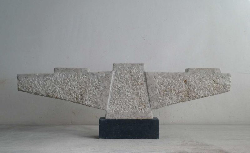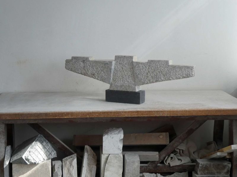 The stone was not that thick, I mainly used the width. A wide gesture, which can evoke associations with spreading your wings, but not so much with flying/taking off. Sturdy and robust, but free from the ground.