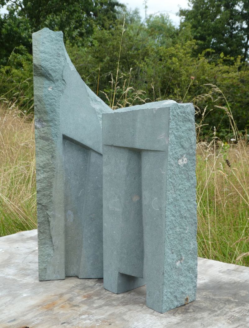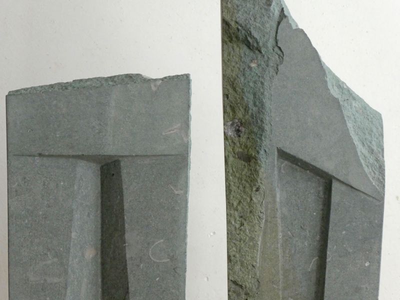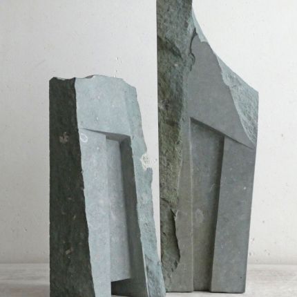 This sculpture is inspired by ancient ruins and temple gates. With rough, old pieces, and tightly worked parts. A bit whimsical, but also made by human hands. I wanted to allow coincidence in this sculpture, the shape of the stone was the starting point. For me this sculpture is about passing time: the old and the new.