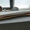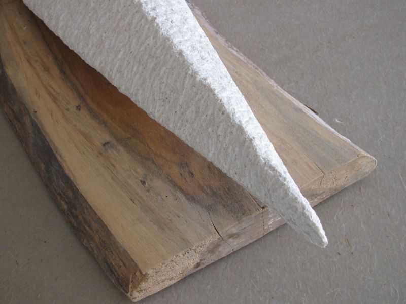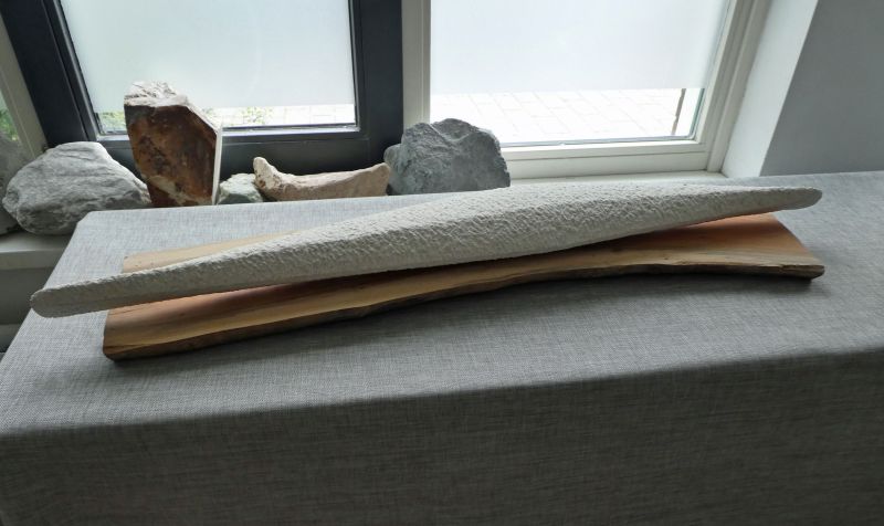 The sculpture lies on a pernambuk shelf. A special type of wood, from which they also make violin bows. Nice material to combine with the light colored stone.
