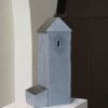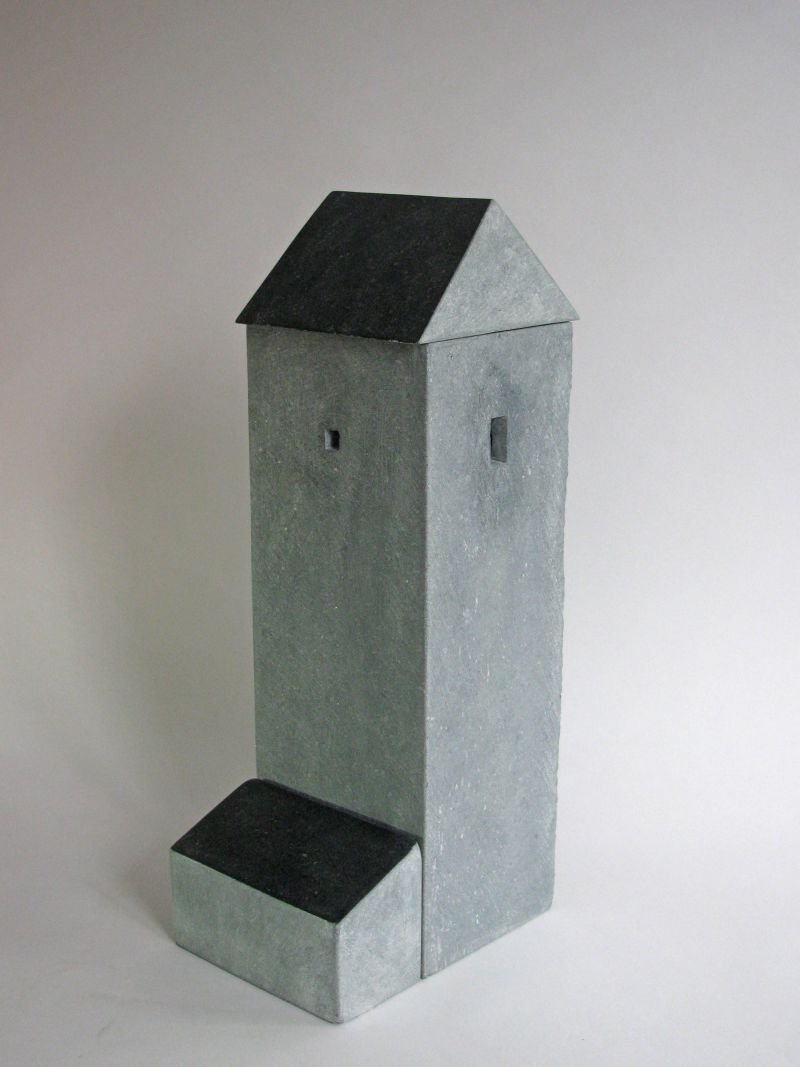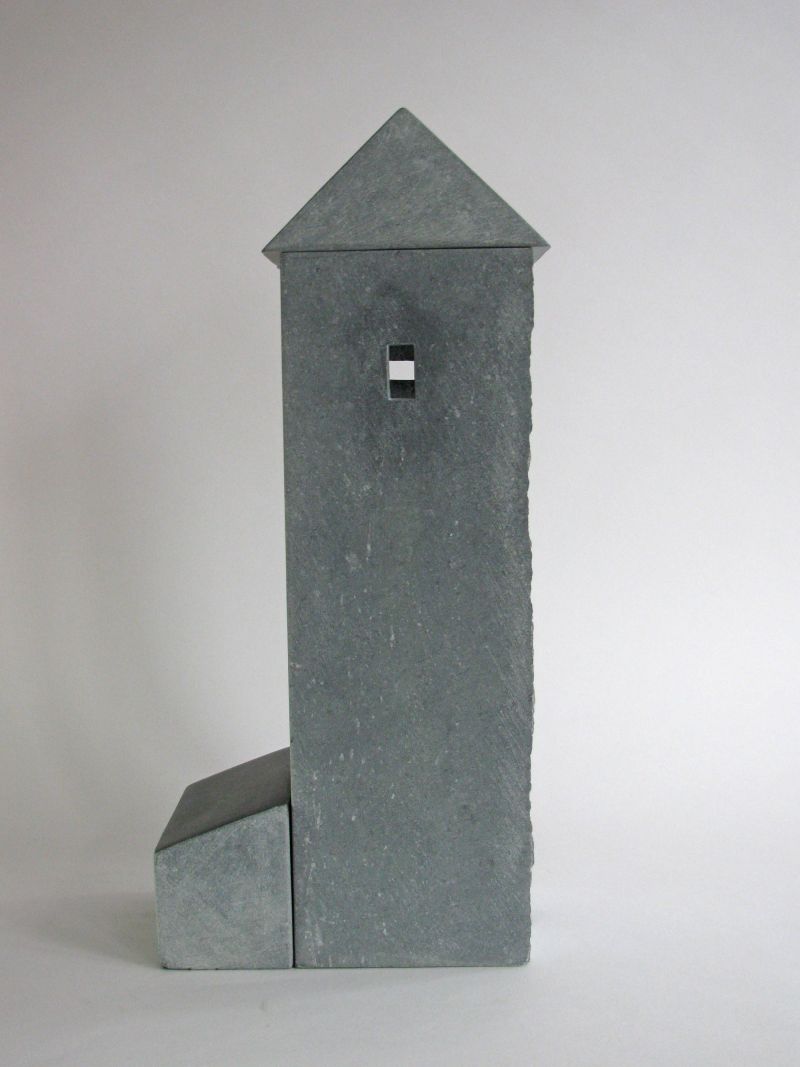 A tower, but also a bit like a cave. You can hardly look in. It's about the light falling in, and the mystery of a building. It's made of three different parts of Irish bluestone, fitting well togehter. The roof-parts are polished to black.