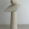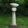 The sculture is made of two different types of limestone, which gives a small but nice color difference. The surface structure is created by the impact of the pointed chisel. Both types of stone are also suitable for outside. There is then a risk of moss deposit.