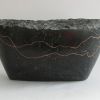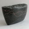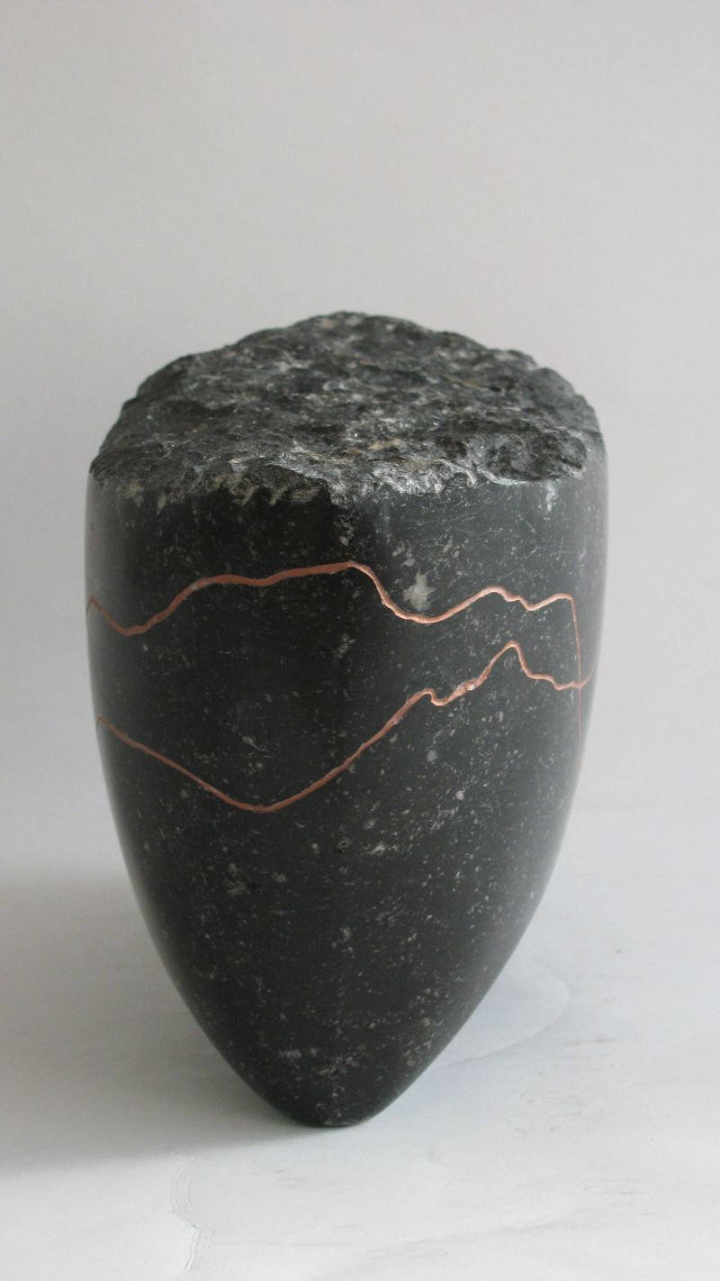 The sculpture is made of Belgian bluestone, polished to a glossy black. The lines, which refer to the erratic course, are engraved in it and filled with copper paint.