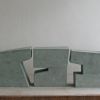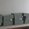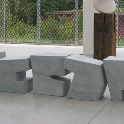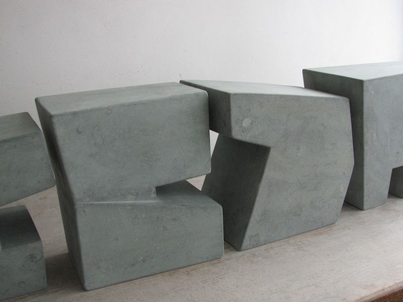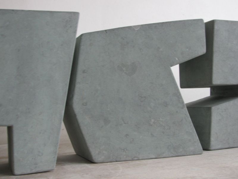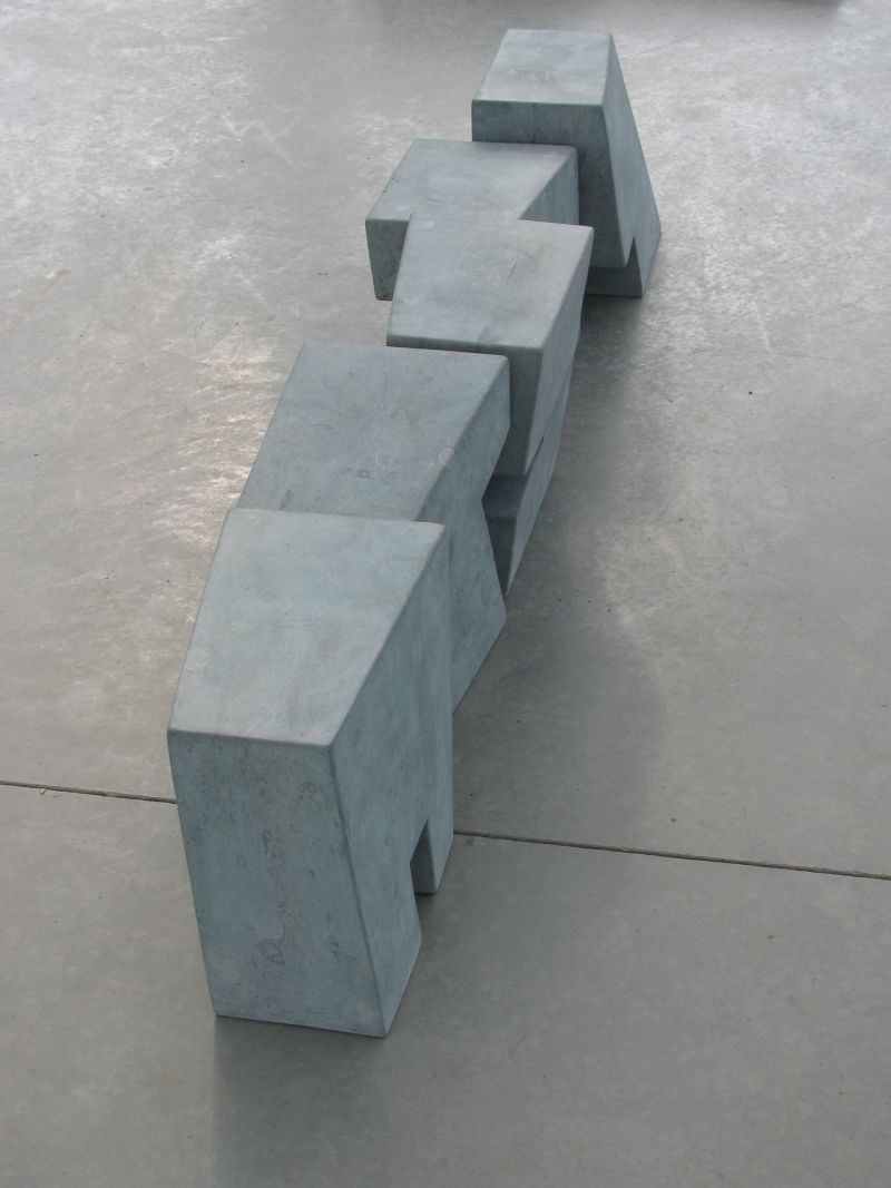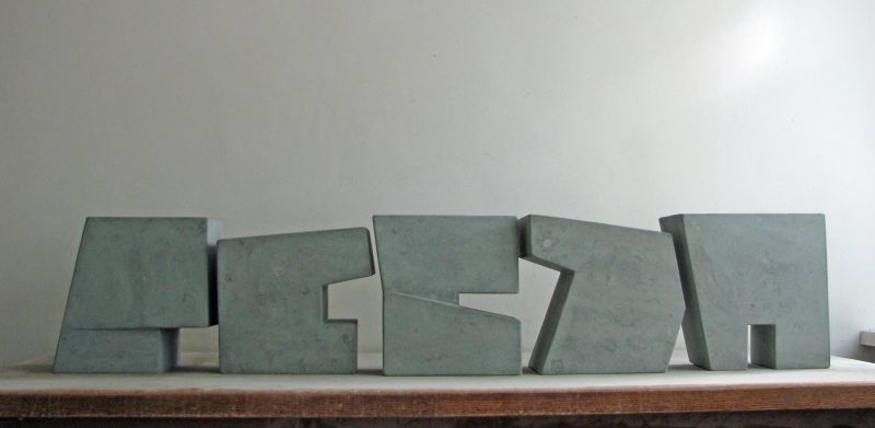 Het beeld bestaat uit 5 losse delen. In elke steen heb ik een ingreep gedaan. Het geeft een opening, maar je komt er niet echt in.Dedelen samen vormen een geheel, een soort grafische tekst. Het lijkt alsof ze in gesprek zijn.