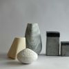 Hoewel ik normaalgesproken niet in series werk, blijft de ‘Ode aan Morandi’ terugkomen. Heb ik weer een aantal kleine, gevarieerde en uitnodigende reststenen, dan begint het puzzelen en combineren haast als vanzelf. De overeenkomst zit steeds in het spelen met verhouding, kleur, structuur en ordening.