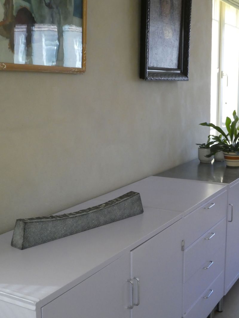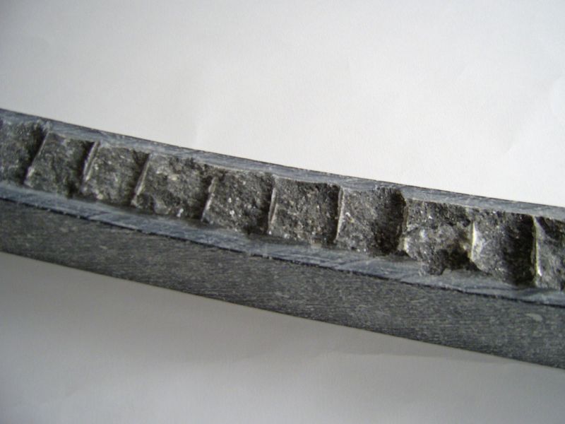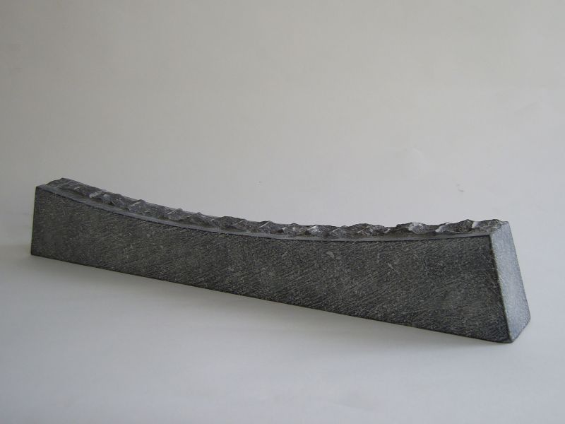 Bij dit beeld was ik eigenlijk bezig met het maken van een gladde gebogen vorm. Maar het ritme van de zaagsnedes en de kleine glinsteringen in de breukvlakken waren te mooi om weg te halen. Meer heb je eigenlijk niet nodig. Zelf houd ik altijd erg van de basale, directe beelden. Weinig is dan meer dan genoeg.